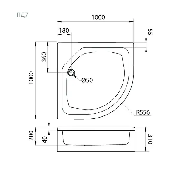 Поддон душевой 100х100 средний (ПД7)