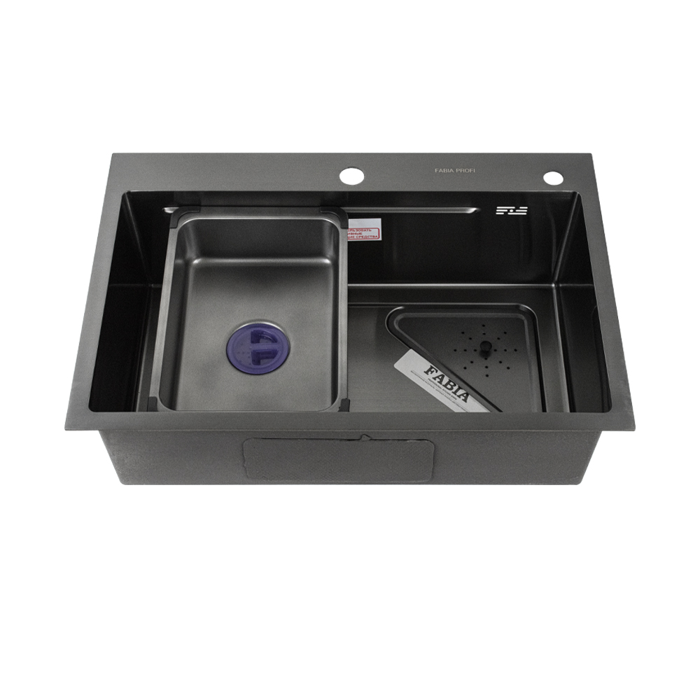 FABIA PROFI - Мойка врезная 68х45 см ГРАФИТ толщина 3,0 х 0,9 мм ,глубина 200 мм + большой УГЛОВОЙ